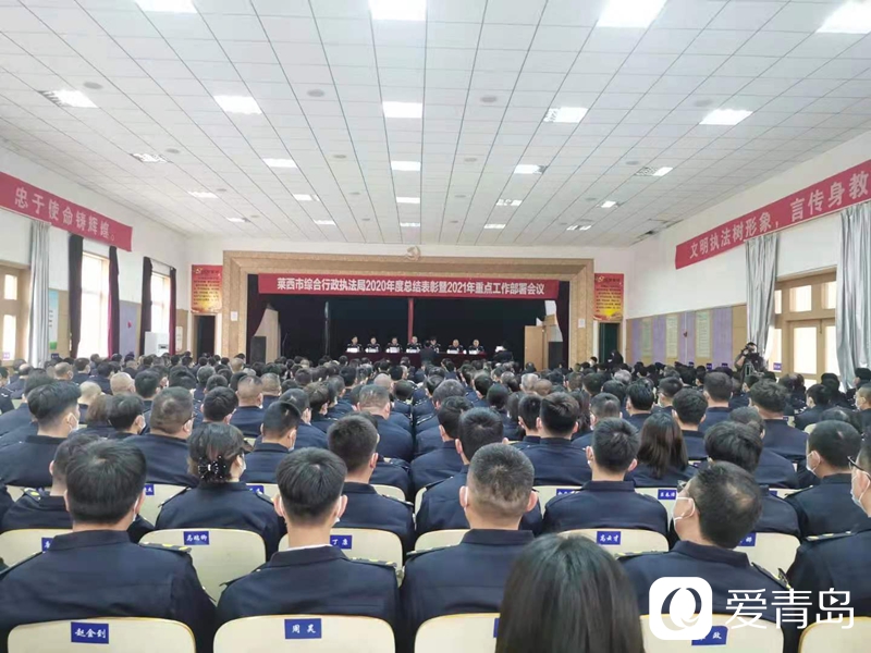 莱西市综合行政执法局于2021年4月2日上午8点30分,在水集中队二楼大礼堂对全员召开2020年度总结表彰暨2021年重点工作部署会议。