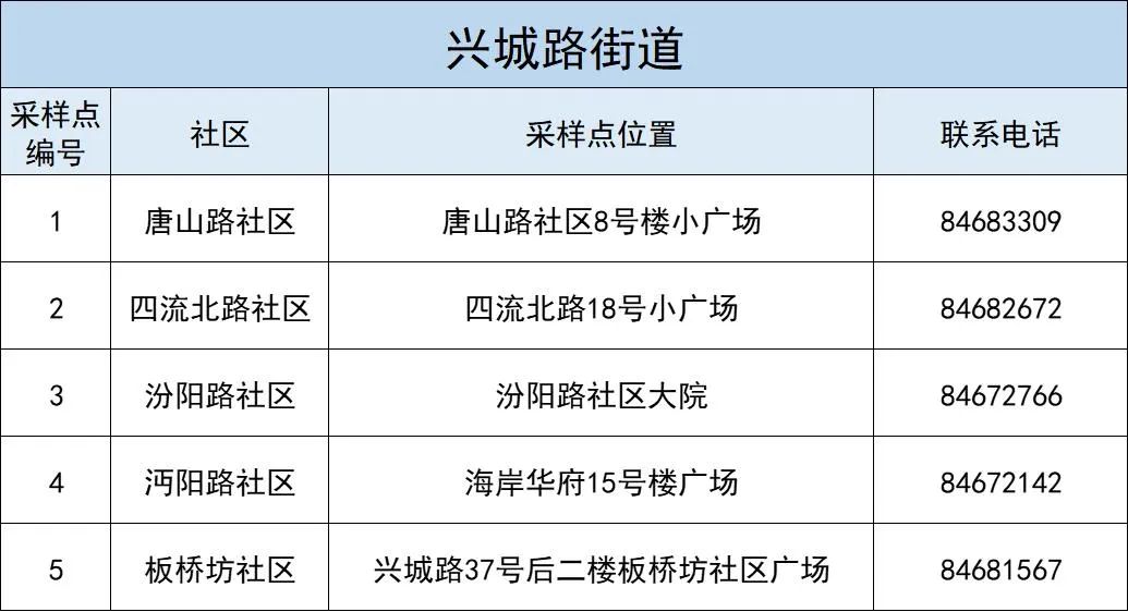 温馨提醒,本轮核酸检测新增兴华路街道常态化核酸采样点一处。