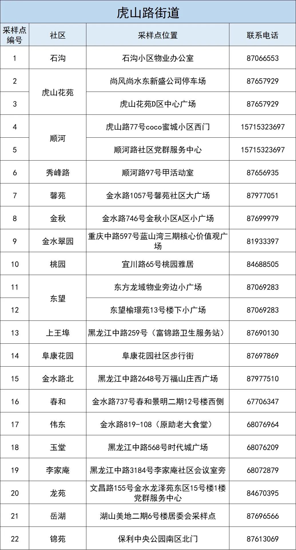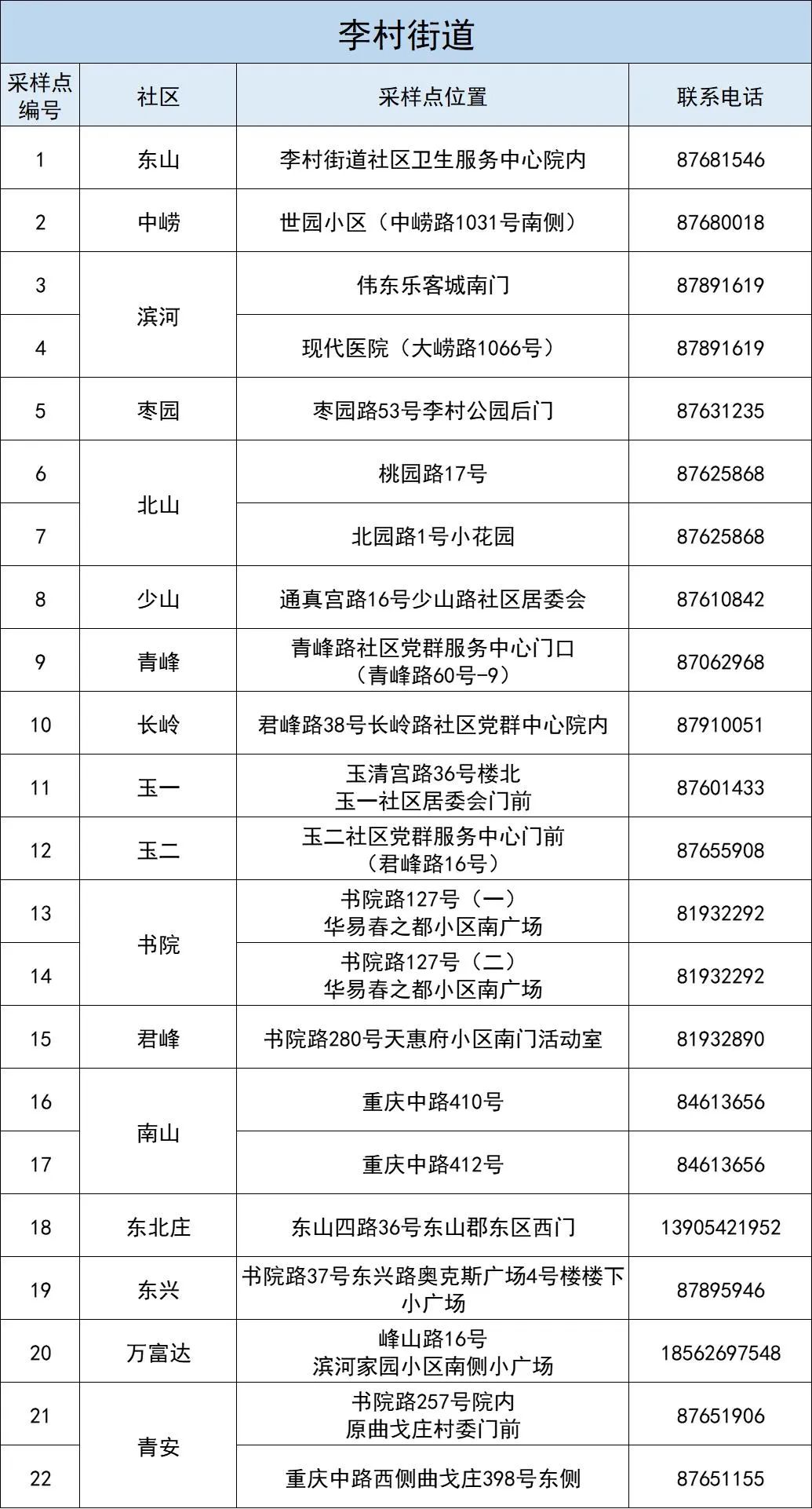 李沧区全员核酸检测采样点
