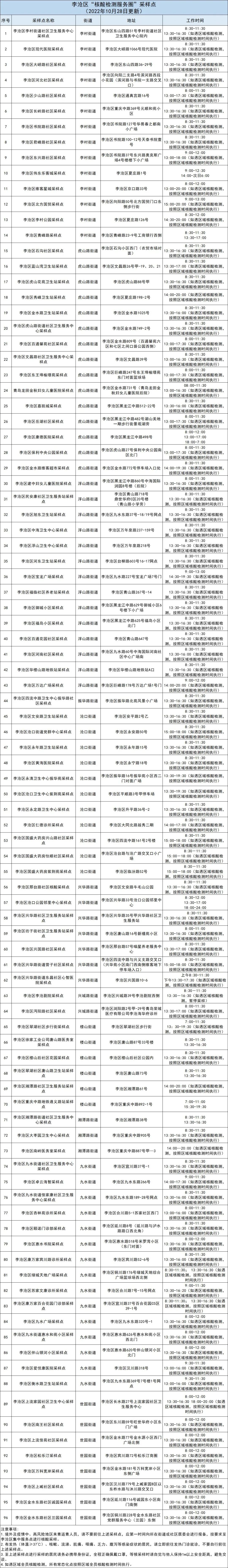 1.李沧区“核酸检测服务圈”采样点详情见本通告下方。
